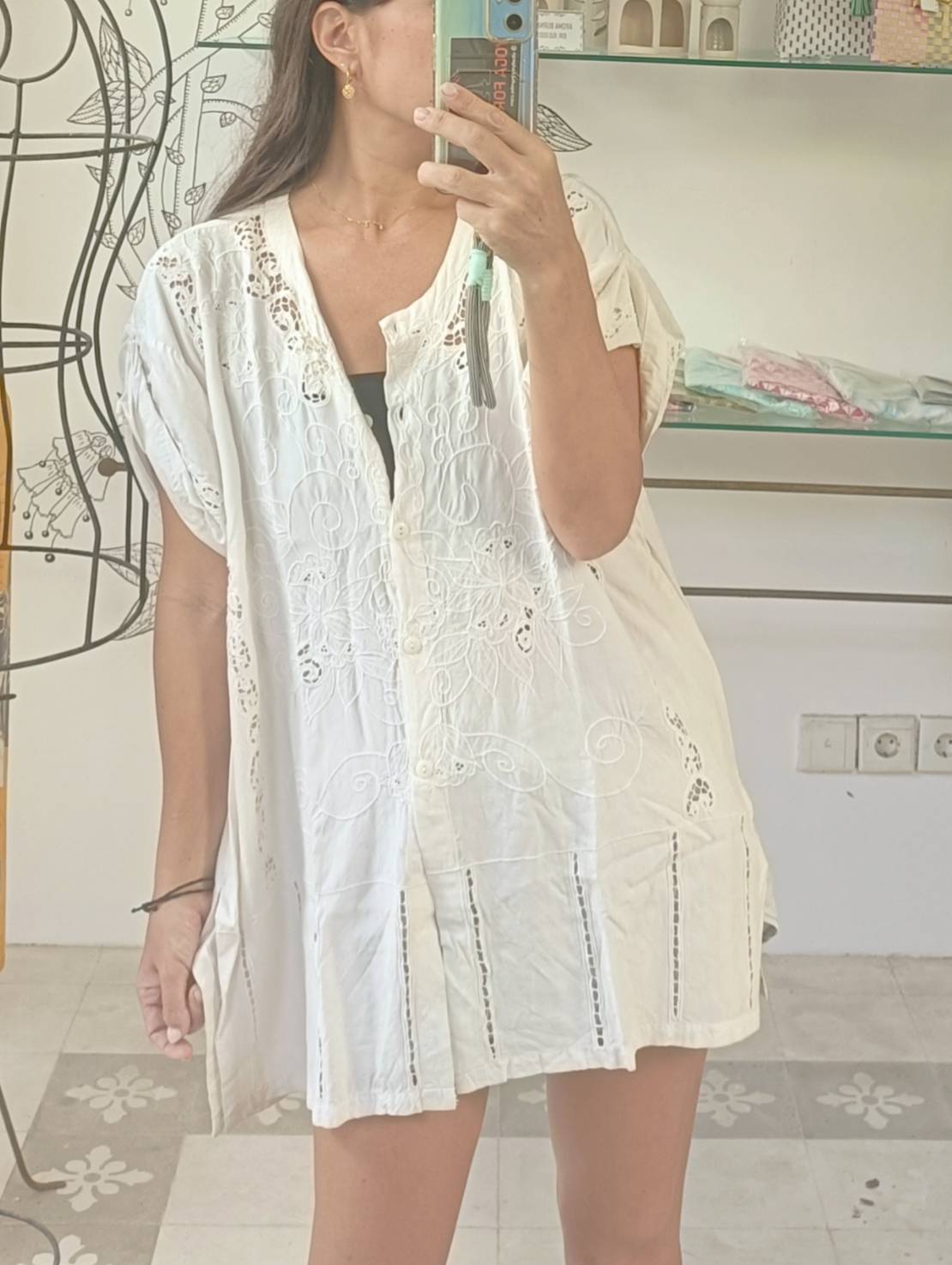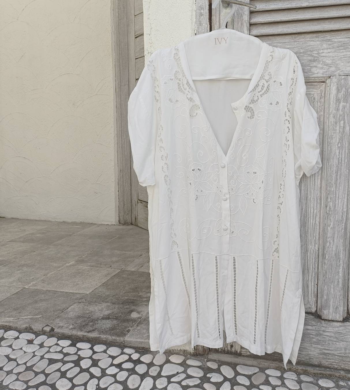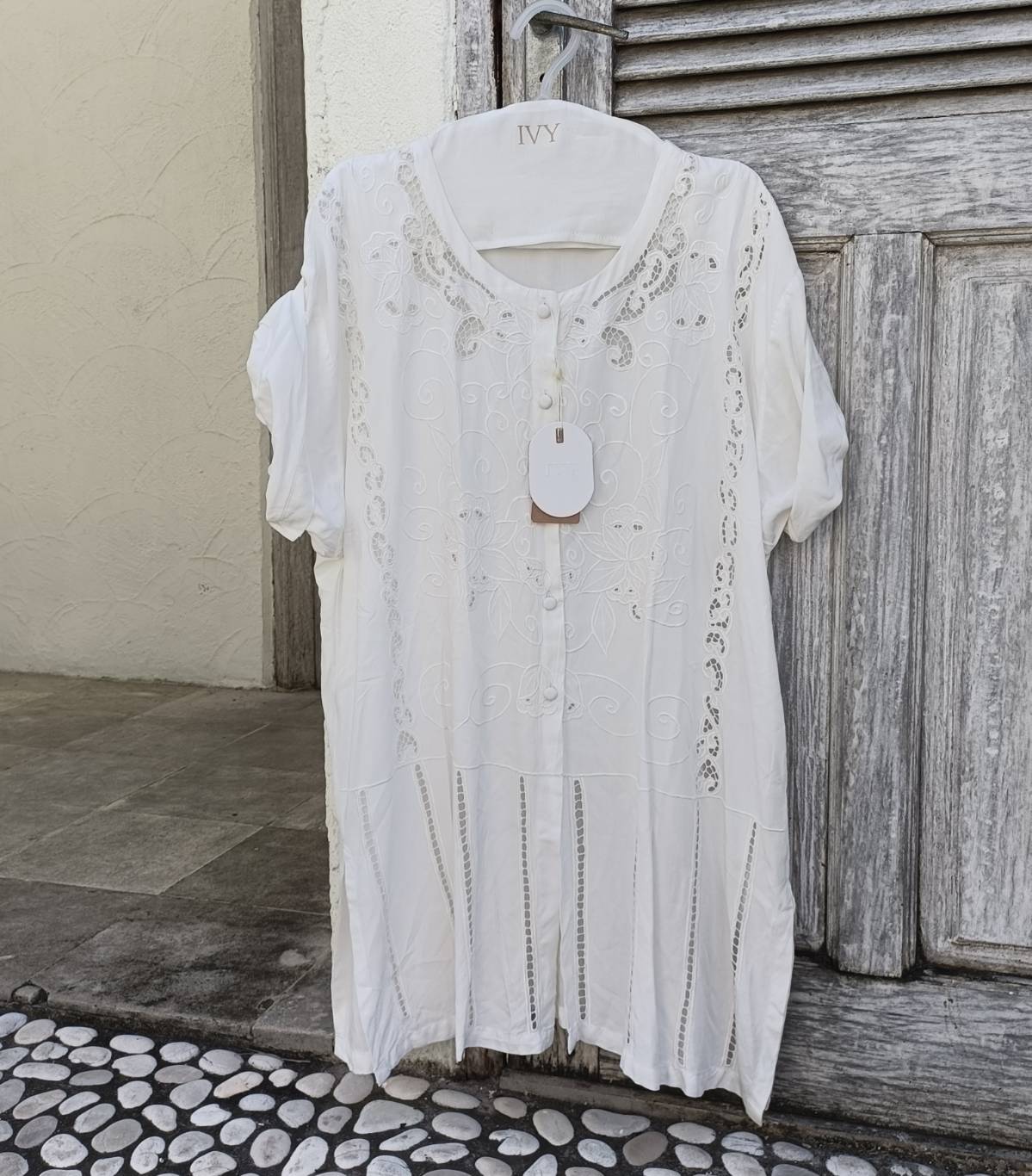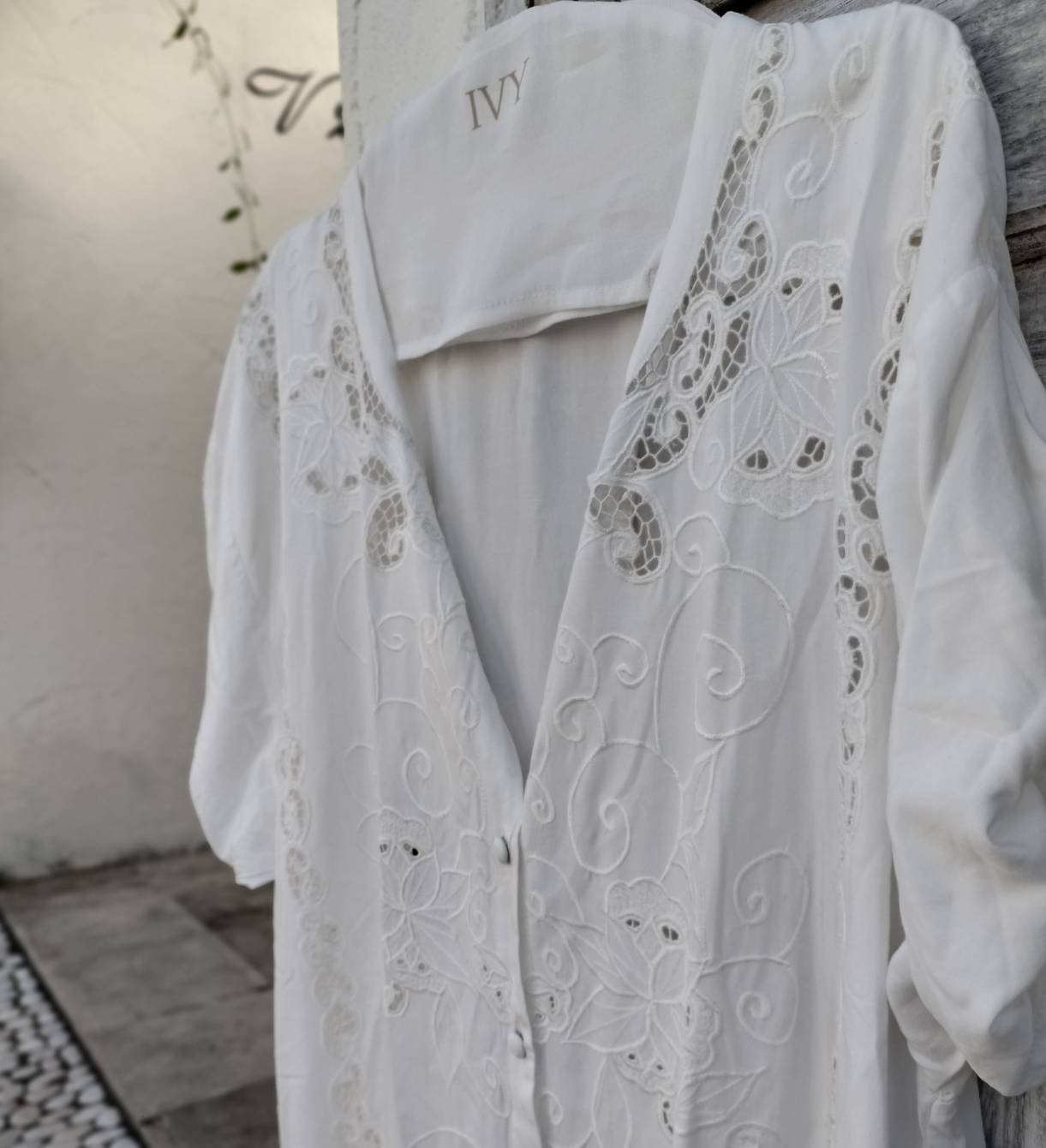 All 「IVY」 embroidery is handmade in Bali. When washing clothes, you can wash them by hand or put them in a laundry net and use a washing machine on gentle mode. If it is very dirty, we recommend soaking it in an enzyme-based detergent before washing. Can be ironed at medium temperature.