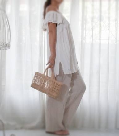 All 「IVY」 embroidery is handmade in Bali. When washing clothes, you can wash them by hand or put them in a laundry net and use a washing machine on gentle mode. If it is very dirty, we recommend soaking it in an enzyme-based detergent before washing. Can be ironed at medium temperature.