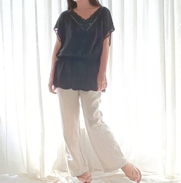 All 「IVY」 embroidery is handmade in Bali. When washing clothes, you can wash them by hand or put them in a laundry net and use a washing machine on gentle mode. If it is very dirty, we recommend soaking it in an enzyme-based detergent before washing. Can be ironed at medium temperature.